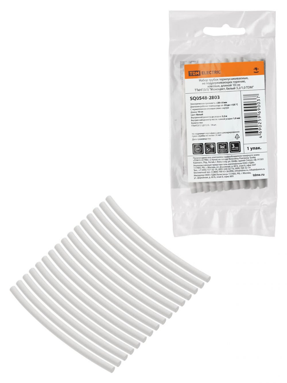 Набор трубок термоусаживаемых, не поддерживающих горение, клеевых, длиной 10 см ТТкНГ(3:1) "Моноцвет, белый 3,2/1,0 TDM"