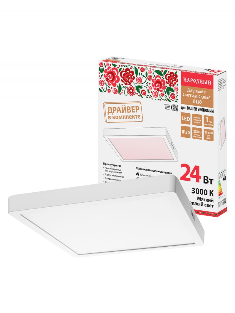 Светильник светодиодный накладной "Даунлайт НАРОДНЫЙ" квадрат СПО (белый) алюминий 24Вт 3000К