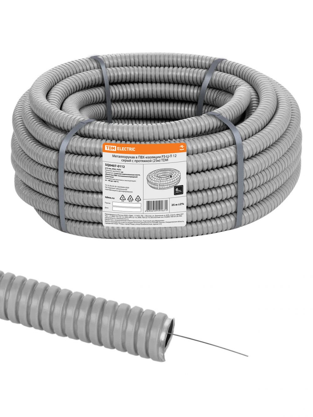 Металлорукав в ПВХ-изоляции РЗ-Ц-П 12 серый с протяжкой (25м) TDM