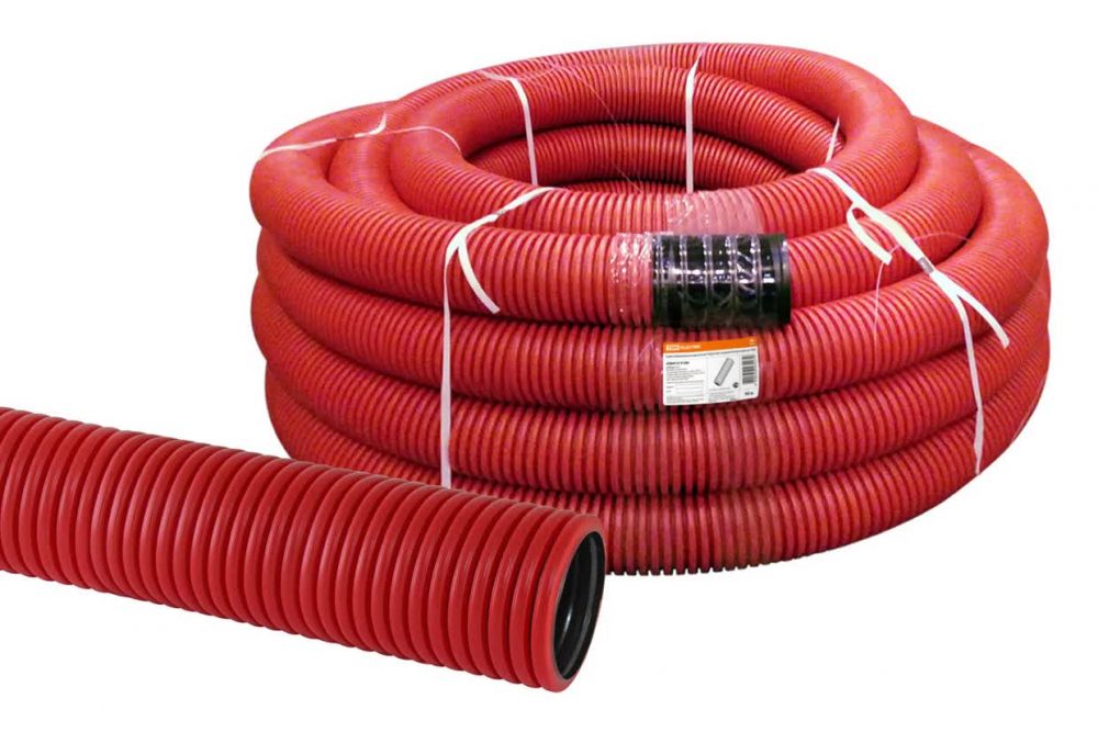 Труба гофрированная двустенная ПНД d 160 с зондом (50 м/уп.) красная TDM