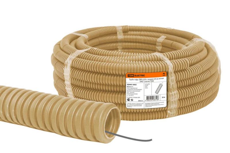 Труба гофрированная ПВХ d 20 с зондом (25 м) легкая "ЭКО" (сосна) TDM