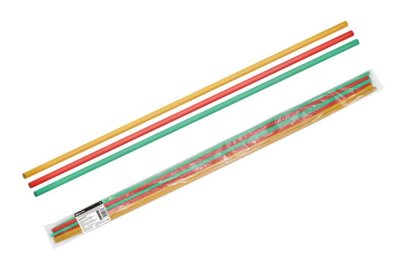 Трубки термоусаживаемые не распространяющие горение, с клеевым слоем, набор 3 цвета (красный, желтый, зеленый) по 3 шт., длиной 1,0 м ТТкНГ(3:1)-4,8/1,5 TDM