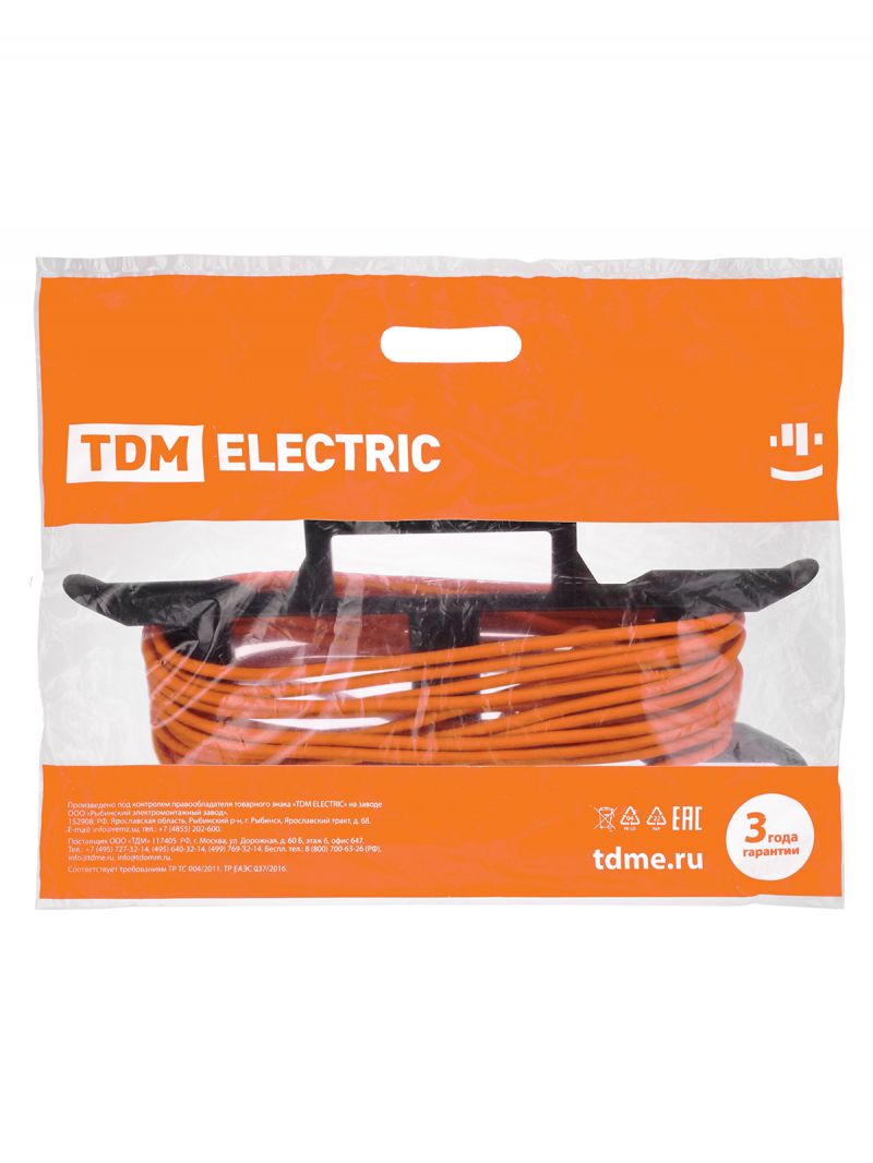 Удлинитель-шнур силовой на рамке УШ10 TDM (штепс. гнездо, 30м ПВС 2х1,0) У-12007