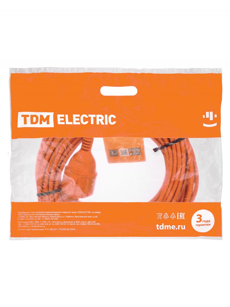 Удлинитель-шнур силовой УШз16 TDM (штепс. гнездо, 20м ПВС 3х1,0) У1-13041