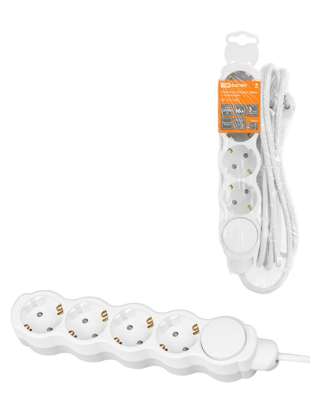 Удлинитель бытовой "Люкс" с выкл., 4 гнезда, 5 м, с/з, с з/ш, ПВС 3х1 мм2, 16 А, 250 В, 3500 Вт TDM У1-43059