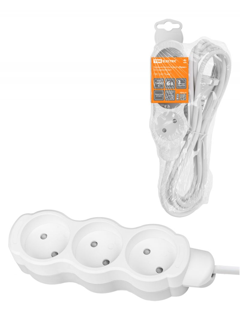 Удлинитель бытовой "Люкс" 3 гнезда, 2 м, б/з, с з/ш, ПВС 2х0,75 мм2, 6 А, 250 В, 1400 Вт TDM У-31012