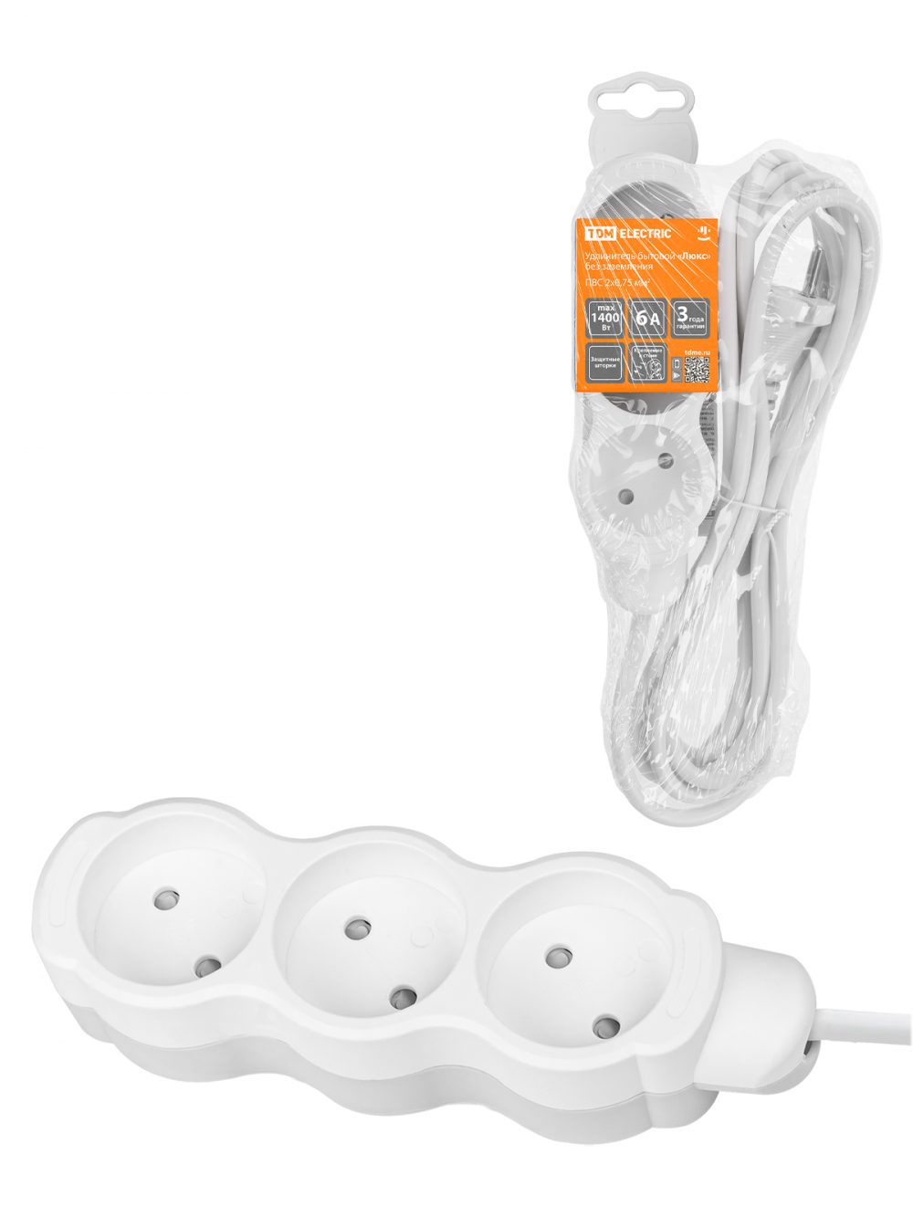 Удлинитель бытовой "Люкс" 3 гнезда, 5 м, б/з, с з/ш, ПВС 2х0,75 мм2, 6 А, 250 В, 1400 Вт TDM У-31012