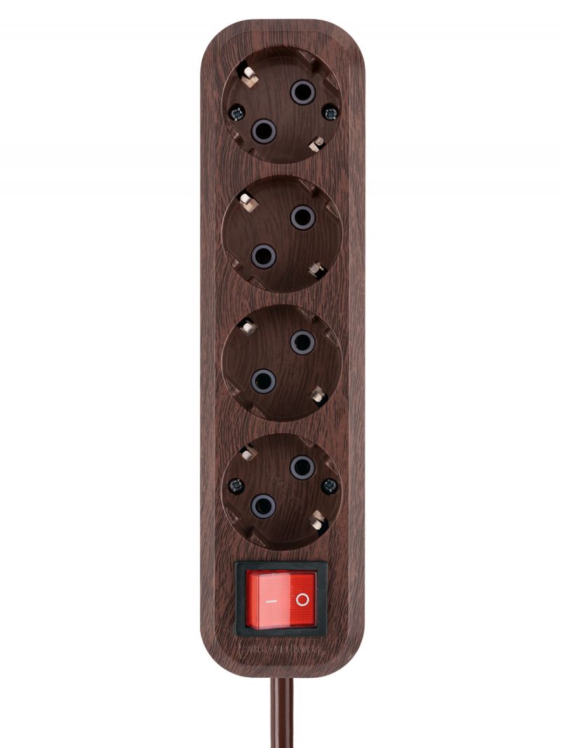 Удлинитель бытовой У04В выключатель, 4 гнезда, 5метров,2П+3, ПВС 3х1мм2 "Эко" (бук) 16А/250В TDM