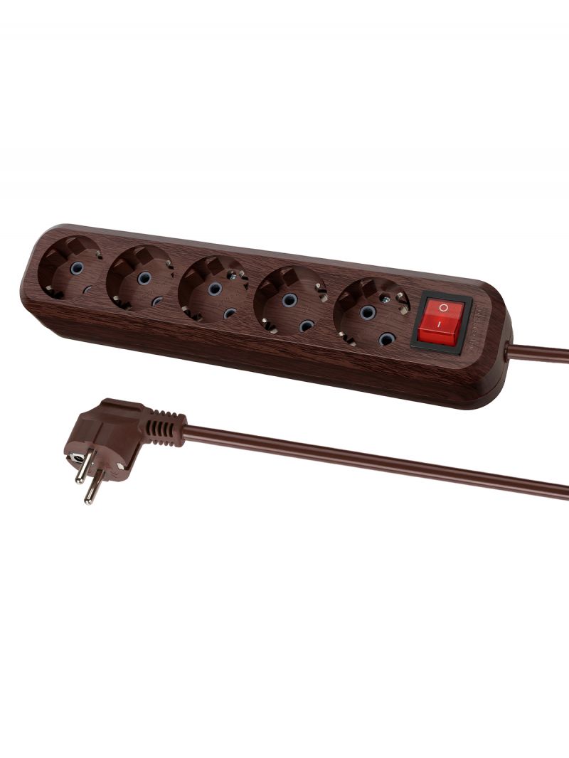 Удлинитель бытовой У05В выключатель, 5 гнезд, 3метра,2П+3, ПВС 3х1мм2 "Эко" (бук) 16А/250В TDM