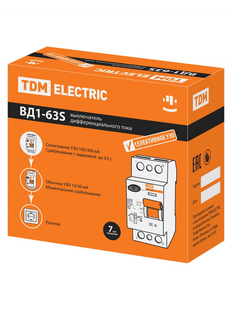 Устройство защитного отключения ВД1-63S 2Р 63А 100мА TDM