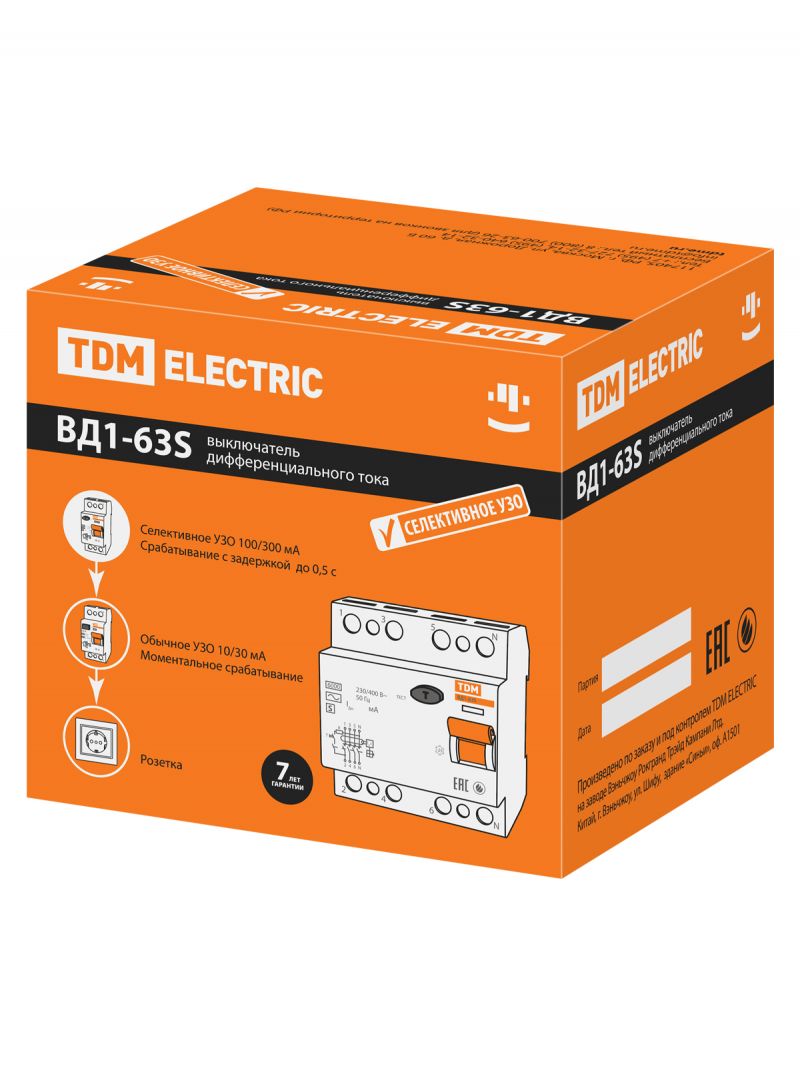 Устройство защитного отключения ВД1-63S 4Р 50А 300мА TDM