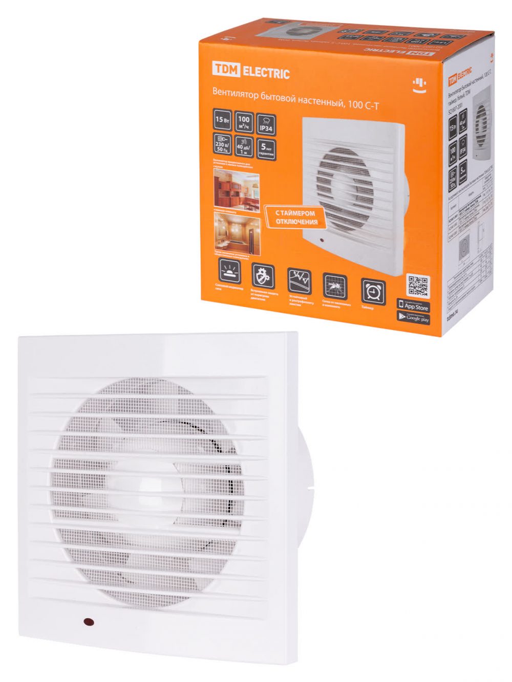 Вентилятор бытовой настенный, 100 С-Т, таймер, белый, TDM