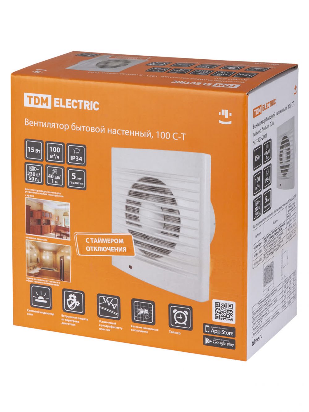 Вентилятор бытовой настенный, 100 С-Т, таймер, белый, TDM