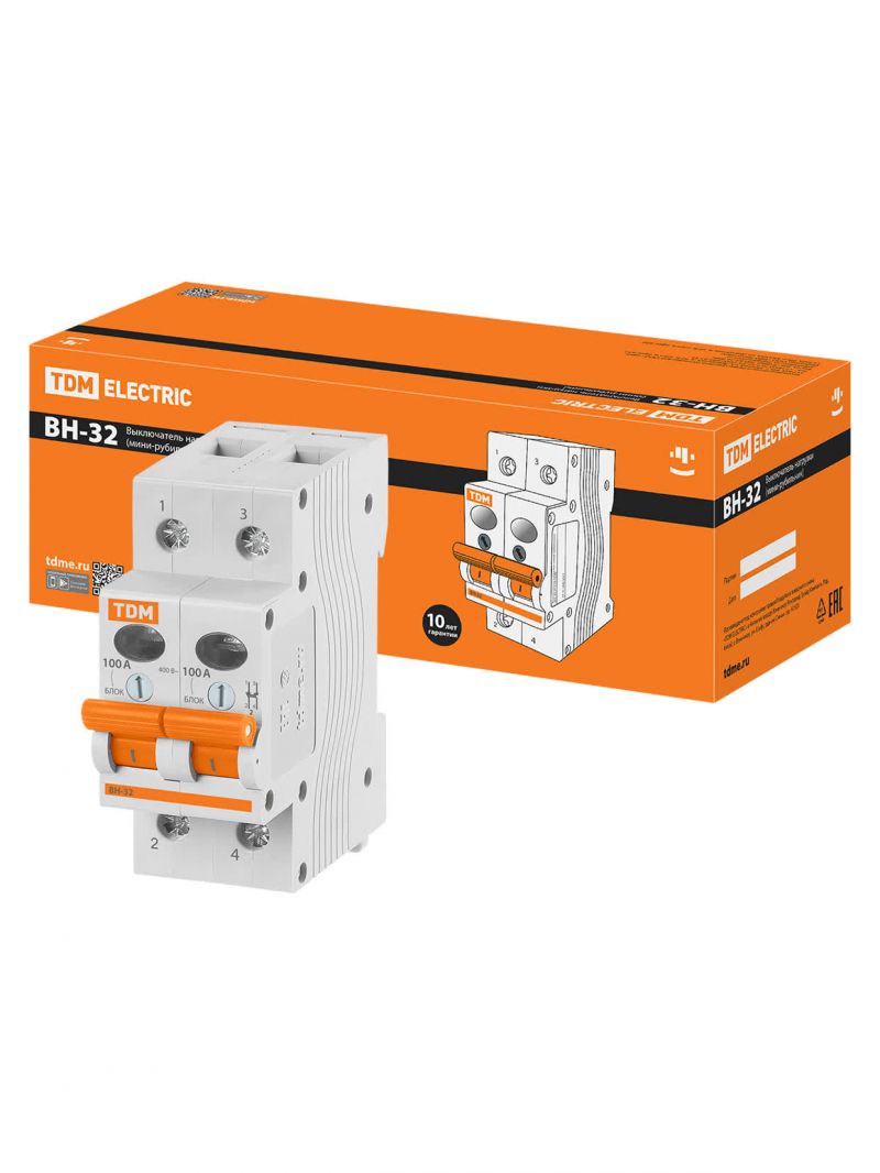 Выключатель нагрузки (мини-рубильник) ВН-32 2P 100A TDM