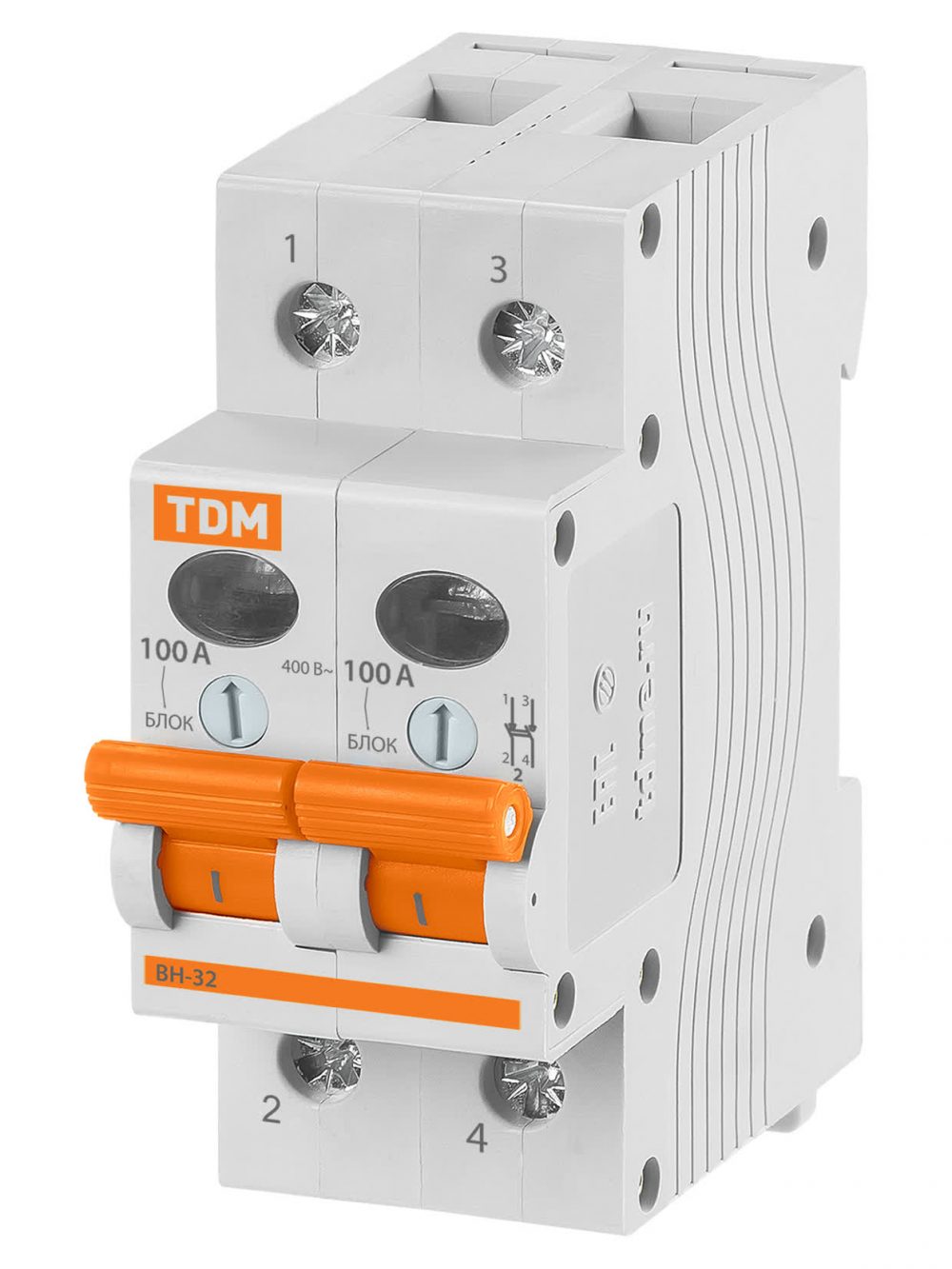 Выключатель нагрузки (мини-рубильник) ВН-32 2P 100A TDM
