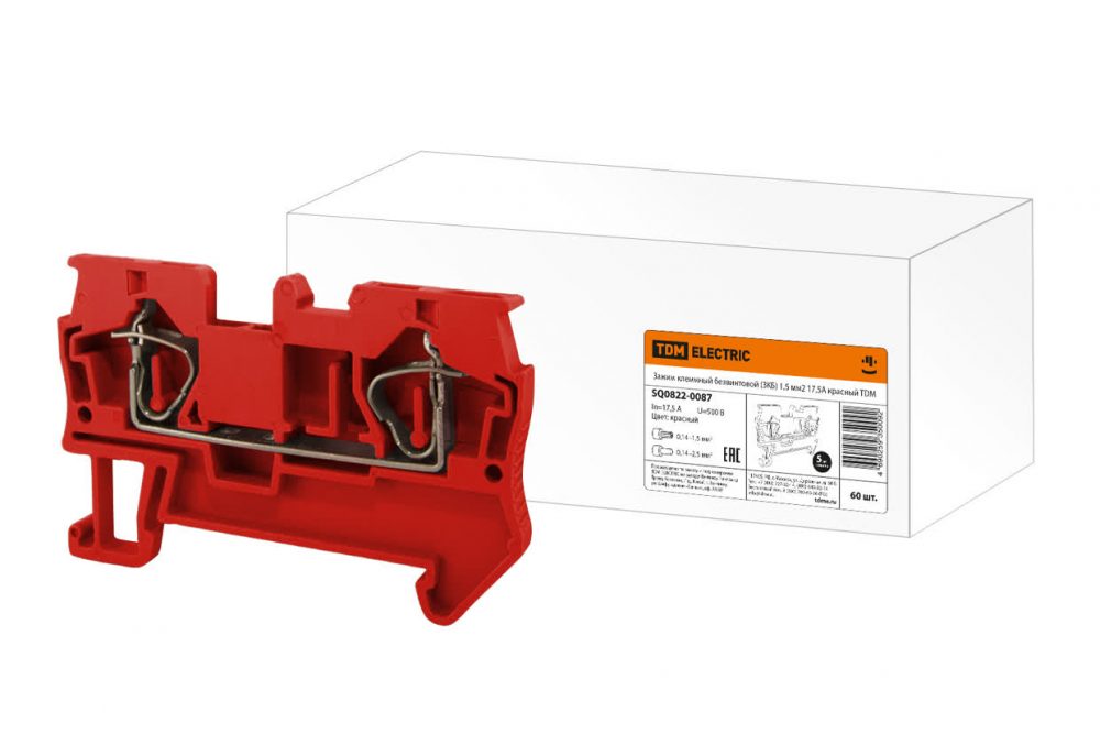 Зажим клеммный безвинтовой (ЗКБ) 1,5 мм2 17,5А красный TDM