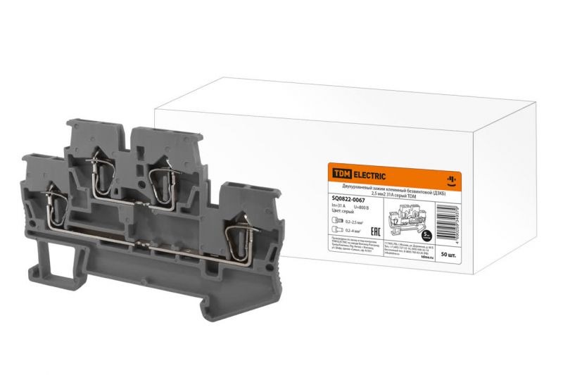 Двухуровневый зажим клеммный безвинтовой (ДЗКБ) 2,5 мм2 31А серый TDM