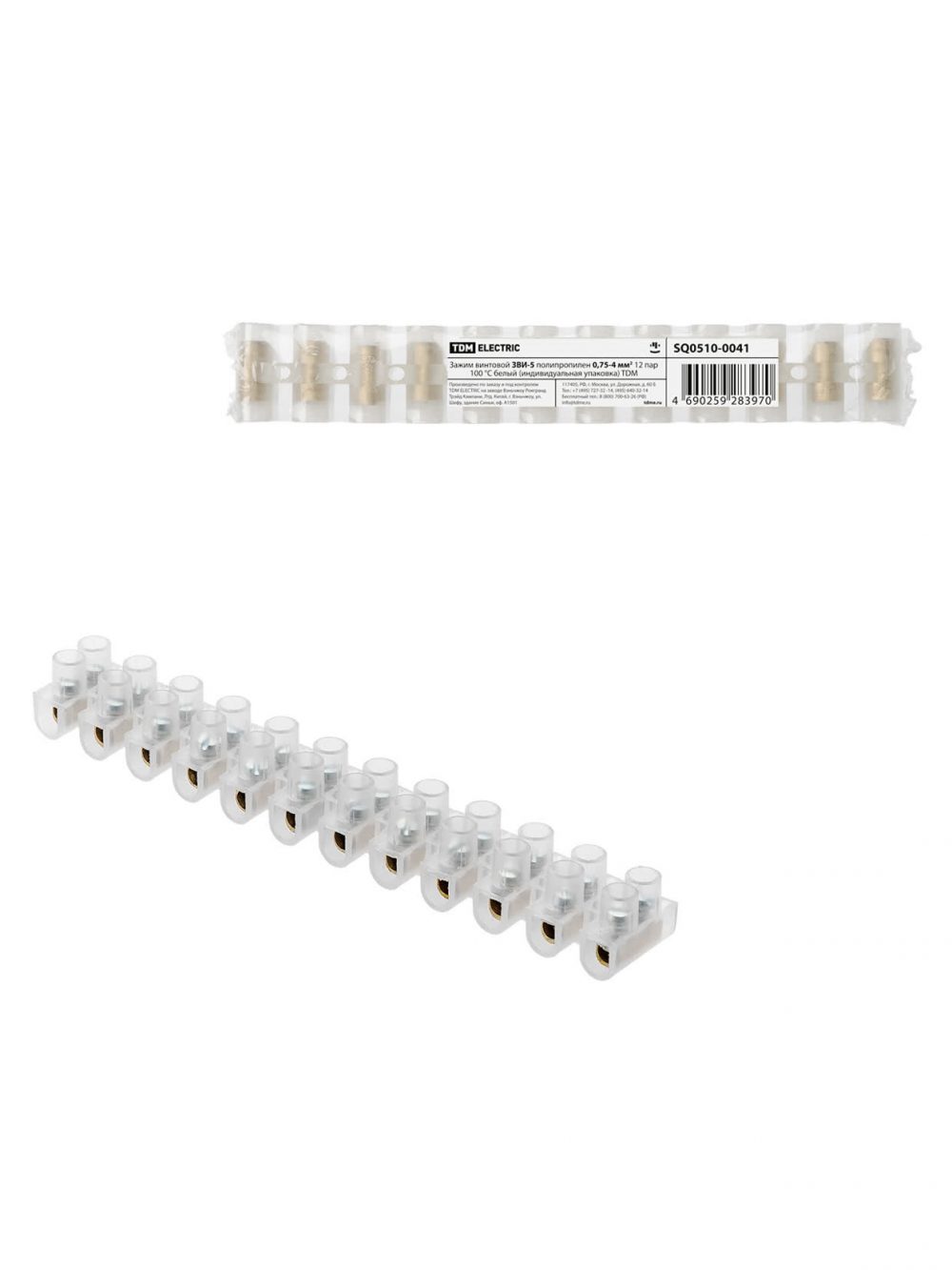 Зажим винтовой ЗВИ-5 полипропилен 0,75-4мм2 12пар 100°С белый (индивидуальная упаковка) TDM