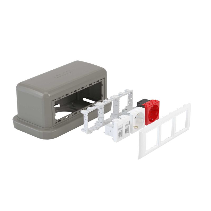 Напольная двухсторонняя башенка BUS. Назначение: организация рабочего места в открытом интерьере, под столами, трибунами и т. д. Подходят для монтажа ЭУИ с 2 сторон, по 6 модулей, монтажа ЭУИ серий «Avanti», ЭУИ «Вива» (Viva) и «45?45 мм» в соответствующих каркасах. Комплект поставки: основание - 1 шт., стойка - 1 шт., крышка - 1 шт., саморезы для монтажа стойки к основанию базы — 4 шт., внутренняя центральная перегородка - 1 шт., рамка на 6 модулей - 2 шт., заглушка сплошная на 6 модулей (накладка для декора неиспользуемого проёма башенки) - 1 шт. Дополнительно необходимо заказать: каркасы под ЭУИ в зависимоси от серии (ЭУИ «Вива» (Viva) и «45?45 мм») или рамку-суппорт («Avanti»). Цвет — серый
