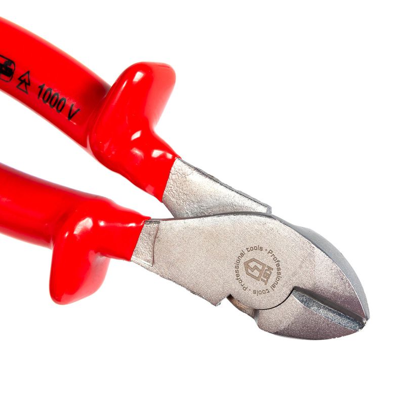 • Для работ под напряжением до 1000 В • Материал рукояток: двухслойная диэлектрическая пластизоль • Внутренний слой (сигнальный) – желтый (светло-красный), внешний слой – красный • Режущие кромки дополнительно закалены токами высокой частоты. HRC 58...62 • Двухсторонняя диагональная заточка лезвий • Резка мягкой проволоки до 4 мм и твердой проволоки до 2 мм • Резка провода O до 9 мм • Чистый и аккуратный рез • Материал рабочей части: хром-ванадиевая сталь • Обработка поверхности: матовое никелирование • Вес инструмента: 282 г • Длина инструмента: 180 мм