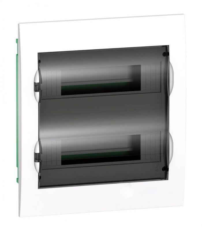 Распределительный щиток Systeme Electric серии City9 Box предназначен для установки аппаратов защиты и управления бытовой электроустановки. Щиток встраивается в стену, имеет 2 DIN-рейки для установки 24 аппаратов по 18 мм. Прозрачная дверь щитка может быть установлена с правой или левой стороны. Щит Systeme Electric City9 Box на 100% совместим с модульным оборудованием DEKraft и Systeme Electric (ранее Schneider Electric MIP22212S, PRA24213).