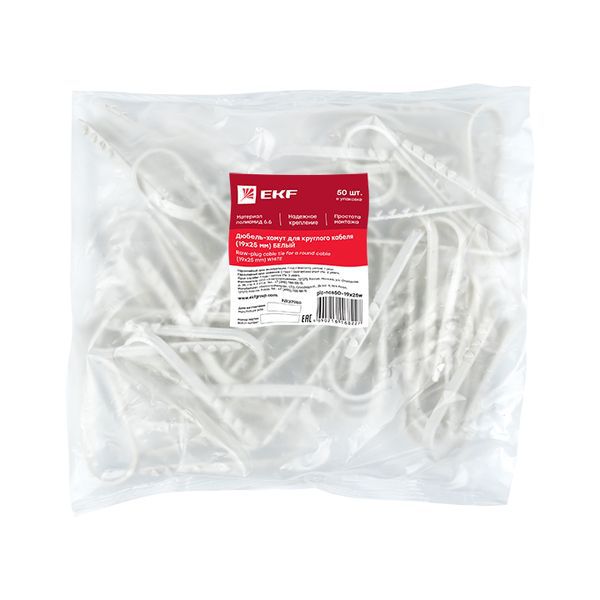 Дюбель-хомут d19-25мм для круглого кабеля бел. (уп.50шт) PROxima EKF plc-ncs50-19x25w
