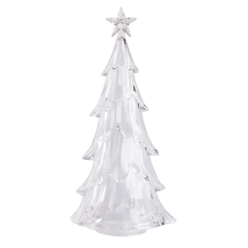 Фигура на подставке «Елочка со звездой» высотой 37 см станет великолепным украшением интерьера, который погрузит вас в атмосферу волшебной зимней сказки и подарит веселое праздничное настроение. Настольная фигура выполнена в виде объемной новогодней ели, увенчанной звездой. Шесть экономичных RGB светодиодов светятся различными цветами, плавно меняя оттенки. Материал изготовления — прочный прозрачный пластик. В нижней части устойчивой подставки располагаются батарейный блок для 4 элементов питания типа ААА и удобная клавиша включения, выключения подсветки. Альтернативное решение для постоянного питания – USB-кабель, который уже входит в комплект.
