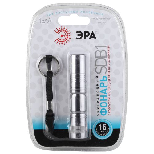 Светодиодный алюминиевый фонарь на батарейках. Простой и надёжный фонарь для повседневного использования. Компактный фонарь оснащён качественным ярким светодиодом мощностью 0,5 Вт, который светит белым светом. Фонарь способен на 15 часов непрерывной работы, а дальность луча составляет 60 метров.Универсальный фонарь комплектуется ремешком, чтобы было удобно держать в руке или прицепить к рюкзаку или ручке сумки. Мощность фонарика вполне достаточна для бытовых нужд, а прочный корпус из анодированного алюминия - гарантия надёжности и долговечности. Компания ЭРА внимательно относится к качеству своей продукции, именно поэтому даже в таком простом фонарике продумана каждая мелочь. От светодиода до металлического корпуса. На ручке фонаря есть специальные противоскользящие насечки. Фонарик компактный, его удобно брать с собой. Фонарь SDB1 станет лучшим решением, если необходимо приобрести фонарик для бытового использования.