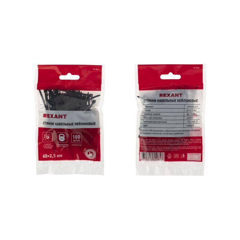 Нейлоновый хомут (кабельная стяжка) REXANT представляет собой черную гибкую полоску из полиамида с замковым механизмом одностороннего действия. Используется для крепления или соединения в жгут проводов, кабелей и любых разновидностей труб. Прочность, эластичность и простота монтажа позволяют использовать их на предприятиях и в быту. Нейлоновая стяжка REXANT отличается надежной фиксацией, прочностью и устойчивостью к внешним воздействиям. Изделие является экологически чистым продуктом, не содержит галогенов. Установка может быть выполнена вручную или с помощью специального пистолета. По окончании работ излишки длины обрезаются. Не рекомендуется перегибать изделие более чем на 90° при монтаже или хранении. В упаковке поставляются 100 стяжек размером 60x2,5 мм.