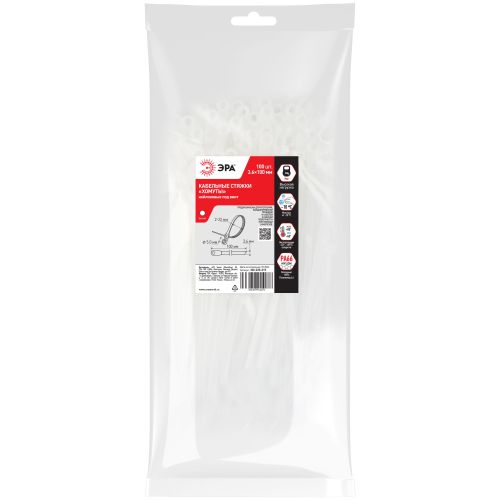 Кабельные стяжки (хомуты) ЭРА нейлоновые под винт обладают неразъёмным замковым механизмом одностороннего действия и предназначены для крепления проводов и кабелей к рабочим поверхностям при помощи саморезов. Данное изделие имеет в составе конструкции площадку с отверстием для винта/самореза, благодаря которому пучок проводов, собранный хомутом, можно быстро прикрепить к любой поверхности: пластик, гипсокартон, дерево и т.д. Особенности изделий: - Замковый механизм одностороннего хода. Неразъемный - 2 в 1: бандаж и крепление к стене с использованием одной стяжки. - Наличие монтажного отверстия на конце стяжки позволяет произвести быстрый монтаж хомута к рабочей поверхности с помощью саморезов или гвоздей. - Материал: Полиамид 6.6 не поддерживает горение, не содержит галогенов по UL94V2.