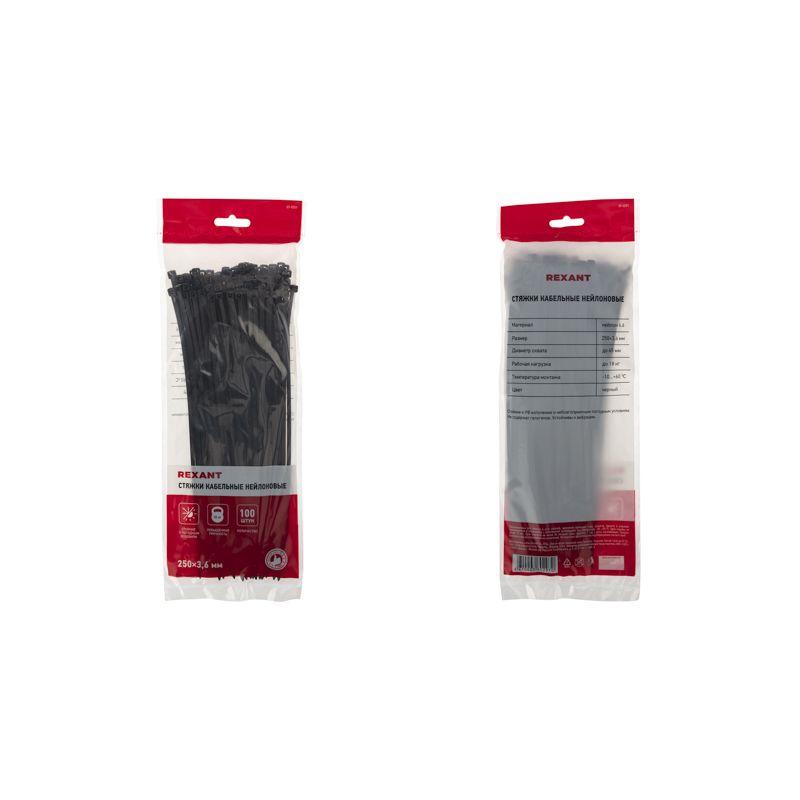 Нейлоновый хомут (кабельная стяжка) REXANT представляет собой черную гибкую полоску из полиамида с замковым механизмом одностороннего действия. Используется для крепления или соединения в жгут проводов, кабелей и любых разновидностей труб. Прочность, эластичность и простота монтажа позволяют использовать их на предприятиях и в быту. Нейлоновая стяжка REXANT отличается надежной фиксацией, прочностью и устойчивостью к внешним воздействиям. Изделие является экологически чистым продуктом, не содержит галогенов. Установка может быть выполнена вручную или с помощью специального пистолета. По окончании работ излишки длины обрезаются. Не рекомендуется перегибать изделие более чем на 90° при монтаже или хранении. В упаковке поставляются 100 стяжек размером 250x3,6 мм.
