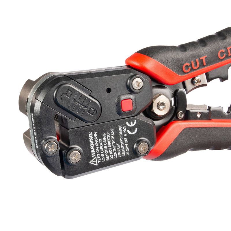 • 5 в 1: • снятие изоляции с проводов 0.05–10 мм2 • резка проводов сечением до 10 мм2 • снятие оболочки с плоских проводов ВВГ-П, ПУНП (кроме литой оболочки с одновременном заполнением промежутков между жилами) • опрессовка наконечников 0.5–6.0 мм2 • бесконтактный детектор переменного напряжения 90-230В • В стандартном диапазоне 0.2–6 мм2: автоматическая настройка на нужный размер и толщину изоляции проводов • В микродиапазоне проводов от 0.05 мм2 и для сечения 10 мм2 используется винт микронастройки • Встроенный бесконтактный детектор для определения наличия напряжения в сети 90-230В расположен под задней крышкой механизма и работает от двух батареек LR44 • Кнопка включения/выключения детектора напряжения • Звуковая и световая индикация при работе детектора • Усиленные прижимные губки с шириной захвата 13 мм • Окно для сброса обрезков изоляции, благодаря которому снятая изоляция не застревает в механизме • Одновременная зачистка нескольких проводов за одно движение, благодаря широким прижимным губкам • Встроенный модуль «CutPro» для резки проводов. Профессиональные лезвия из нержавеющей стали вместо заточенного участка на металлическом корпусе правой рукоятки в моделях WS-04A/ 04B и WS-07 • Две направляющие, предохраняющие инструмент от разбалтывания и лезвия для резки от перекоса • Типы опрессуемых наконечников: неизолированные наконечники и автоклеммы под двойной обжим • Съемный регулятор длины снятия изоляции • Новые эргономичные рукоятки с увеличенной площадью из нескользящего прорезиненного материала • Вес: 370 г • Длина: 206 мм