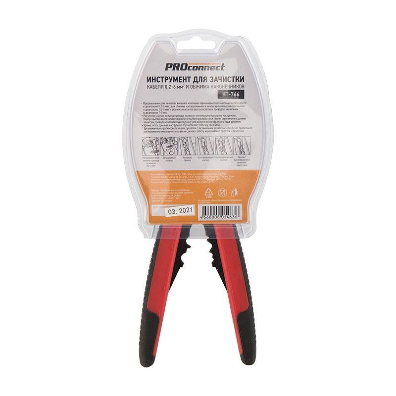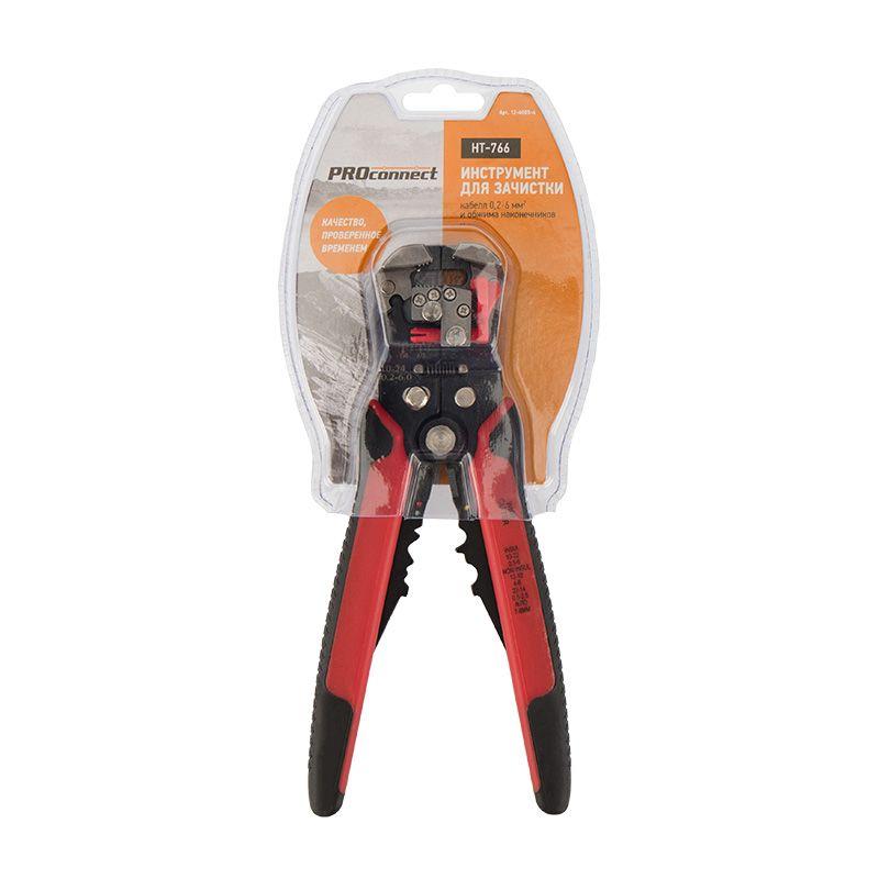 Стриппер HT-766 предназначен для зачистки внешней изоляции одножильного и многожильного кабеля, обжима изолированных и неизолированных наконечников, обжима контактов высоковольтных проводов зажигания. Корпус стриппера изготовлен из высокопрочной инструментальной стали, благодаря чему устойчив к механическим воздействиям и имеет продолжительный срок службы. В конструкции стриппера предусмотрен ограничитель длины зачистки провода и возвратная пружина, которая обеспечивает обратный ход рукояток и упрощает процесс работы с инструментом. Регулятор усилия зажима провода позволяет адаптировать инструмент под различные типы и размеры изоляции и не повредить сам провод при снятии изоляции. Также стриппер оснащен режущей кромкой для равномерной обрезки проводников. Двухкомпонентные защитные рукоятки с резиновыми вставками не дают инструменту выскальзывать из руки при работе.