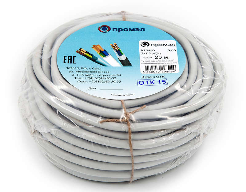 Кабель NUM-O 2х1.5 (бухта 20м) (шт) ПромЭл 13321300