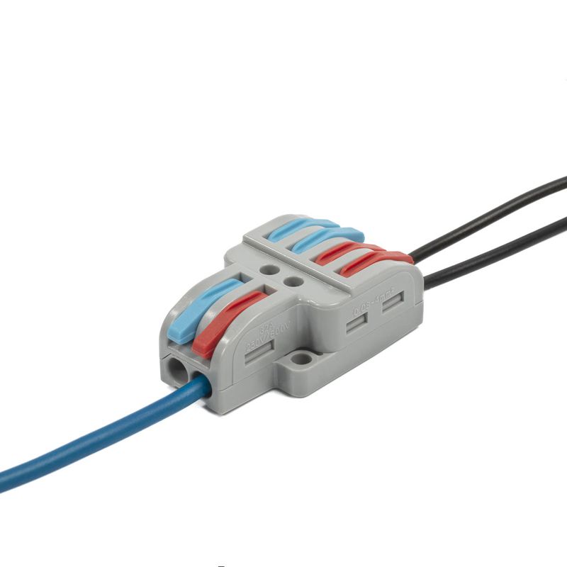 • Универсальные изолированные клеммы для ответвления любых типов медных проводников: моножильных и многожильных тонкопроволочных • Клеммы имеют монтажную площадку, позволяющую устанавливать клемму на плоскую поверхность или в монтажную коробку • Зажим проводов в клемме осуществляется при помощи рычагов • Наличие специального паза в корпусе клеммы для размещения рычага в закрытом положении надежно предотвращает случайное отсоединение проводника • Возможность измерения электрических параметров цепи без разбора и нарушения изоляции соединения • Безопасность и порядок в распределительной коробке • Максимальное напряжение: 450 В
