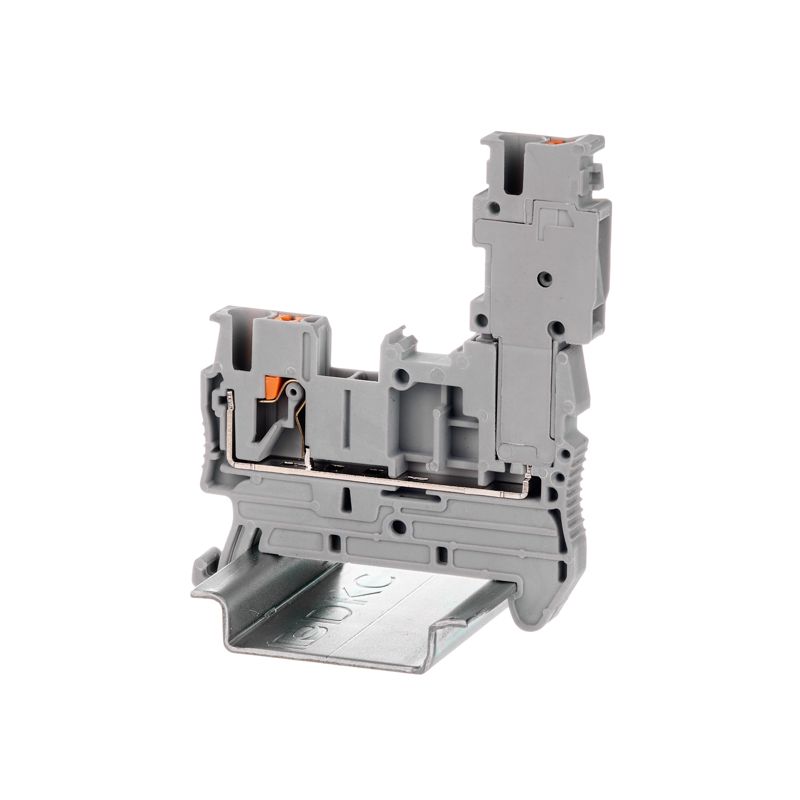 Клемма проходная с Push-in зажимом под вставной разъем предназначена для коммутации проводников двух через разъемный штекер, который вставляется в клемму. Монтаж на DIN-рейку OMEGA. Температура эксплуатации от -40 до +105°C. Корпус выполнен из ПА 6.6 с классом горючести V0 UL-94. Серый цвет, 2 точки подключения, 2.5 мм2. 2 канала вставных перемычек. Габариты (В?Ш?Г) 36,9?48,6?5,2 мм.