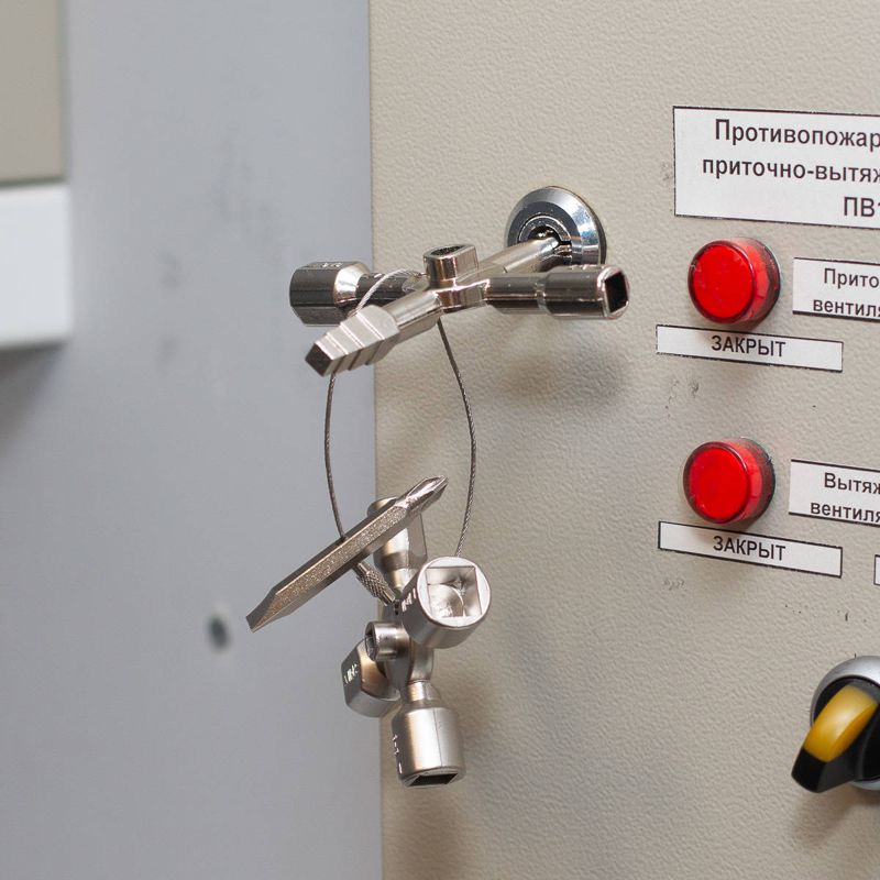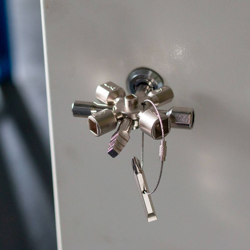 • Универсальный, многофункциональный ключ для использования в инженерных системах зданий и транспорта: сантехнических и электрических шкафах, системах вентиляции и кондиционирования воздуха • Ключ состоит из двух крестовин, соединенных между собой магнитами • Количество рабочих профилей ключа: 10 шт. • Типы профилей: • внутренний квадрат (4 сегмента): 5 / 6-7 / 6-8 / 10-11 мм • внутренний треугольник (3 сегмента): 7-8 / 9-10 / 11-12 мм • внешний квадрат (1 сегмент): 6, 7, 8, 9 мм • двойная бородка (1 сегмент): 3-5 мм • полукруг (1 сегмент): 6 мм • Двусторонняя бита PH2/SL7 мм (на гибком стальном тросике) • Материал ключа: цинковый сплав • Вес: 143 г • Длина: 92 мм