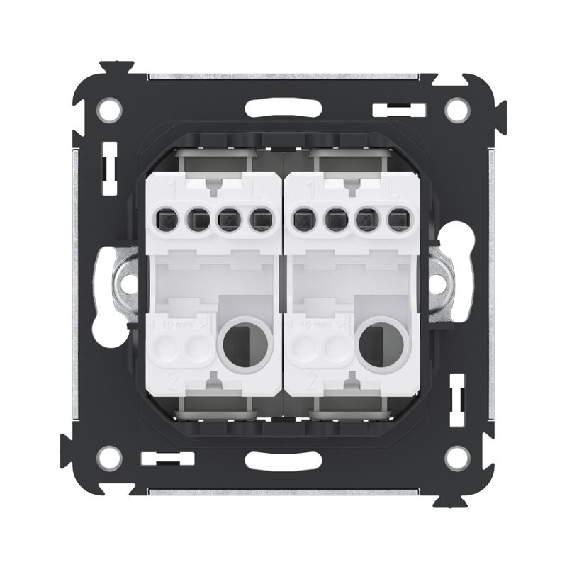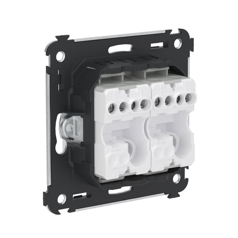 Кнопка двухклавишная. Назначение: для монтажа в подрозеточные коробки глубиной не менее 45 мм (код 59301). Используется в качестве кратковременного включения источника питания энергией. Характеристики: 2 модуля, диаметр отверстий для ввода кабелей – 3 мм (по 2 отверстия на одну клемму); винтовые зажимы; шаблон для зачистки кабеля – 11 мм; номинальный ток – 10 A; номинальное напряжение – 230 В; фиксация в подрозеточные коробки при помощи каркаса с лапками (код 4400802) и саморезов. Цвет: "Белое облако". Производитель оставляет за собой право вносить во внешний вид изделия изменения, которые не влияют на его функционал, безопасность и надежность.