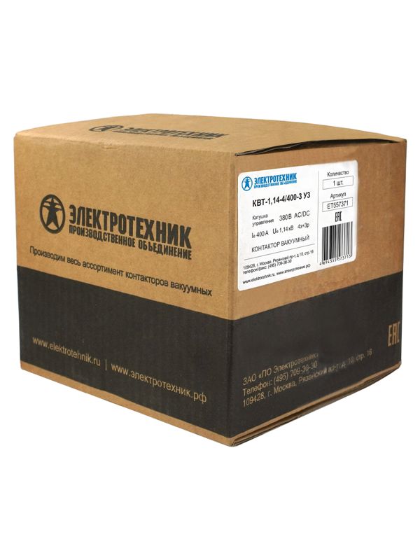 Контактор вакуумный КВТ-1.14-4/400-3 У3 3п 400А кат. 380В 4НО+3НЗ IP00 без реле Электротехник ET557371