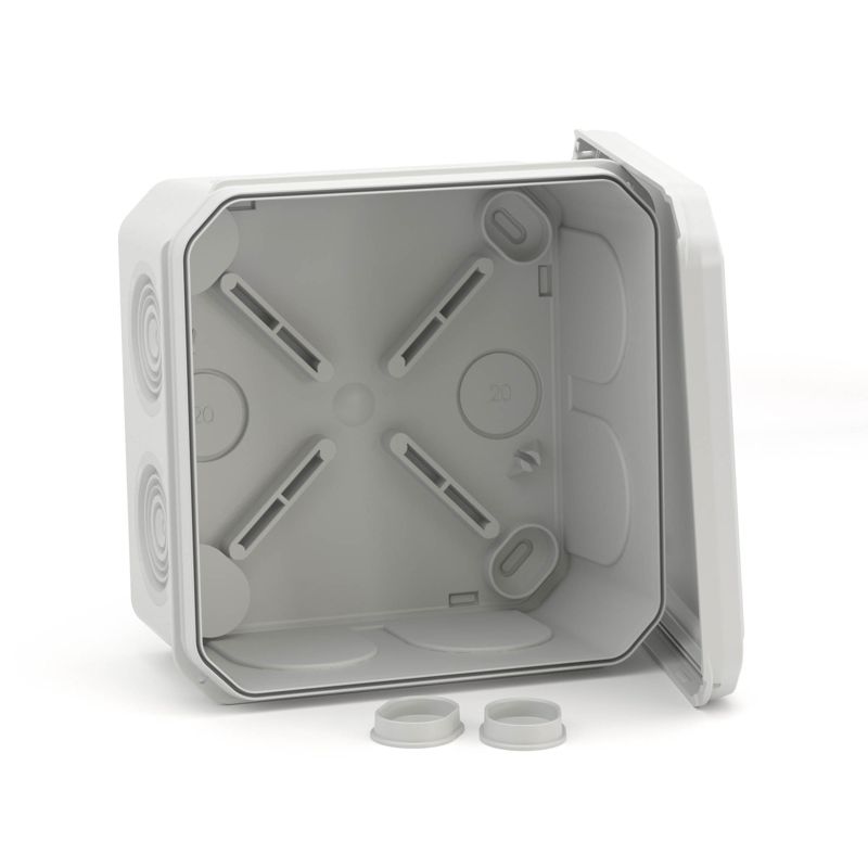 Применяется для защиты и эстетичного оформления мест соединения кабелей (информационных, осветительных, силовых). Коробка имеет 8 герметичных вводов по периметру для ввода жестких и гофрированных труб, а также кабелей с максимальным диаметром 25 мм, и 2 дополнительных ввода на торцевой части коробки для ввода жестких и гофрированных труб, а также кабелей диаметром 20 мм. Параметры: 100x100х50 мм (внутренние размеры) и 109х109х58 мм (внешние размеры). Квадратная форма. Материал – пластик. Крышка - матовая, непрозрачная, закрывается защелкиванием. IP55 по ГОСТ 14254. Можно устанавливать как в помещении, так и на открытом воздухе (при условии защиты от воздействия прямых солнечных лучей и осадков). Цвет - серый. Температура эксплуатации от –25 до +60 °С. Halogen free. Розничная упаковка.