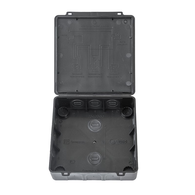 Коробка распределительная 100х100х30 (HF) двухкомп. Безгалоген. для прям. монтажа черн. (уп.48шт) Промрукав 60-0302-9005