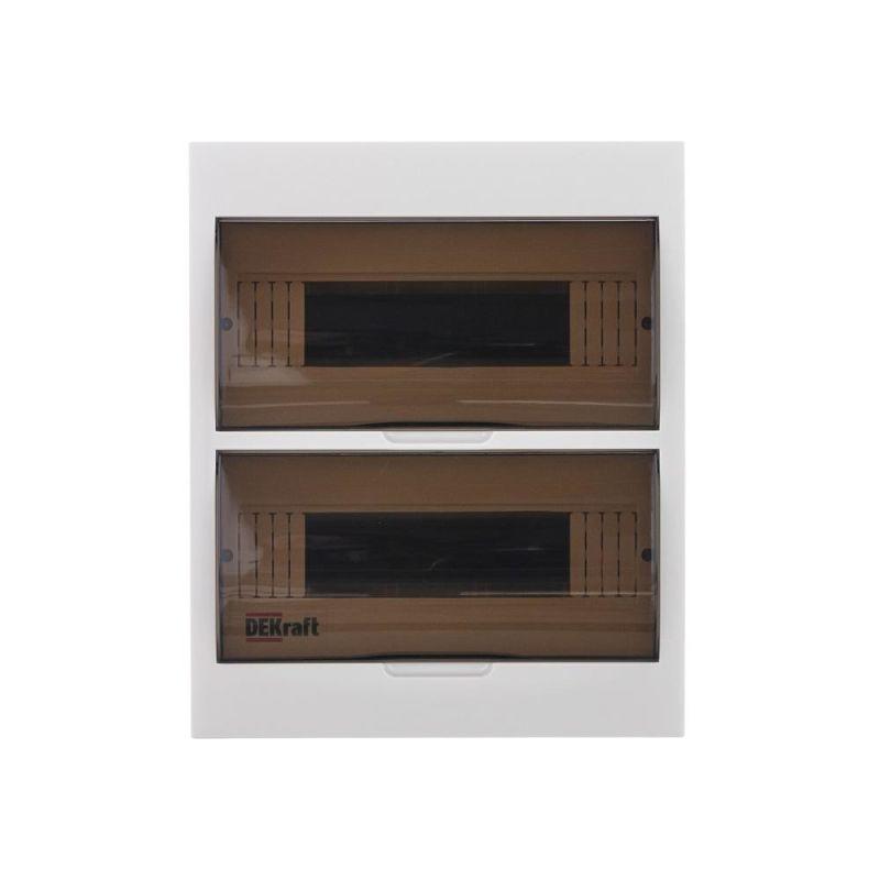 Корпус пластиковый навесной серии ЩРН-П IP41 RAL 9002 (светло-серый) используют для установки модульных устройств. Дизайн дверц корпуса имеет скругленные формы. Фронтальные части корпуса, дверцы, основание корпуса изготавливаются из самозатухающего ABS-пластика. Корпус имеет штампованные вводы для кабелей с разных сторон, и расстояния до точек крепления указаны сзади. Корпус является встраиваемым, имеет 2 черных DIN-рейки и 24 модулей (18 мм) для установки устройств, изолированные держатели для шинок, шинки N и PE. Дверцы на каждый ряд фиксируются в верхнем положении. Щиток на 100% совместим с модульным оборудованием Dekraft и Systeme Electric.