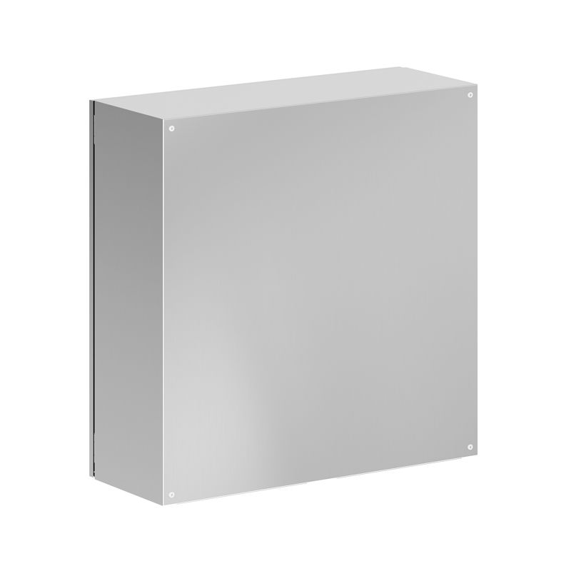 Навесные корпуса серии STH предназначены для систем автоматизации и распределения электроэнергии, эксплуатирующихся в коррозионно-активных средах - области с высокой влажностью, соляной и морской туман, химически агрессивные среды, открытые пространства с высокой концентрацией загрязняющих веществ. Корпус, дверь, фланец изготавливаются из нержавеющей стали AISI 316 (1.4401) толщиной 1,5 мм. Литой уплотнитель двери и фланца - вспененный силикон. Монтажная плата изготовлена из оцинкованной стали толщиной 1,8 мм. Степень защиты IP66, ударопрочность IK10, сейсмостойкость 9 баллов по шкале MSK-64, климатическое исполнение УХЛ1, ОМ2, ОМ3, группа горючести НГ. Комплект поставки: корпус, дверь реверсивная, монтажная плата с двунаправленной разметкой, дверные рейки, поворотный замок 2 шт., сплошной фланец для ввода кабеля 2 шт., комплект заземления без проводов. Габариты 800x800x300 (ВхШхГ) мм.