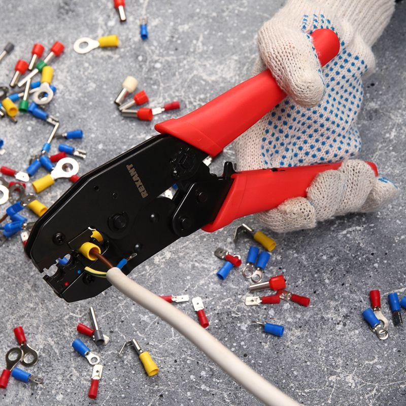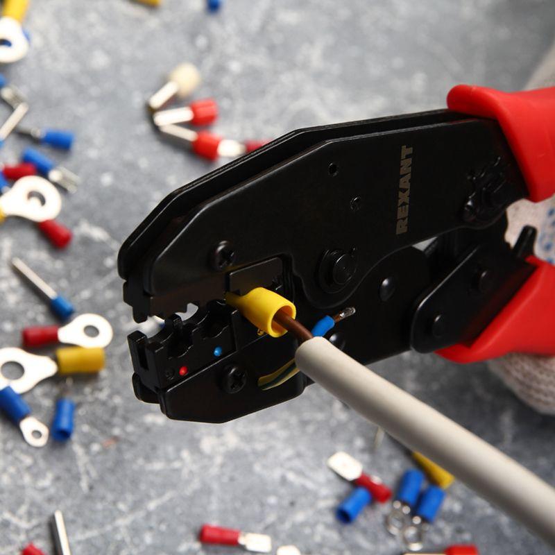 Кримпер HT-336H разработан для профессионального обжима изолированных наконечников и клемм сечения 0,5-6 мм2. Корпус инструмента выполнен из высокопрочной закаленной инструментальной стали с воронением, что обеспечивает длительный срок службы и устойчивость к механическим нагрузкам. Съемные обжимные губки, изготовленные методом микролитья, гарантируют идеальное соответствие размерам и форме контактов. Инструмент оснащен различными функциональными механизмами, которые упрощают процесс работы. Передаточный механизм снижает нагрузку на руку при работе. Возвратный механизм автоматически возвращает ручки в исходное положение после каждого цикла обжима. Регулятор силы сжатия позволяет настроить оптимальное усилие обжима для разных типов клемм. Храповой механизм обеспечивает качественную опрессовку без преждевременного разжатия ручек. Нескользящие рукоятки выполнены из плотного синтетического материала, что делает работу комфортной и безопасной даже при длительном использовании.