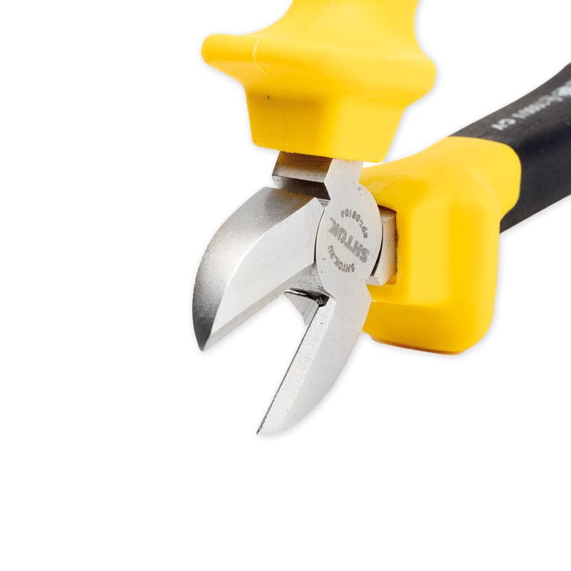 Боковые кусачки SHTOK 1000В 160 мм 08104 используются для резки медного или алюминиевого провода, а также для выполнения различных работ. Для надежности захвата и удержания инструмента во время работы предусмотрены специальные упоры на рукоятках. Рабочая часть изготовлена из хром-ванадиевой стали. Работа под напряжением до 1000В Покрытие рукояток ШГИ -двухкомпонентные Chrome Vanadium CrV HRC 58 1000V