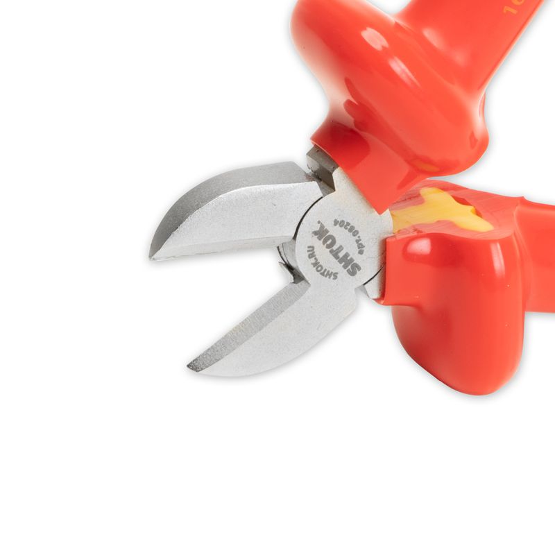 Диэлектрические боковые кусачки 1000В 160 мм SHTOK 08204 выполнены из стали, увеличивающей надежность и долговечность инструмента. Рукоятки кусачек изготовлены их двухслойного пластизоля. Инструмент применяется для выполнения разных работ под напряжением. Особенности кусачек SHTOK 08204 Надежность удержания инструмента Рукоятки из двухслойного пластизоля обеспечивают надежность удержания диэлектрических боковых кусачек 1000В 160 мм SHTOK 08204 во время работы.