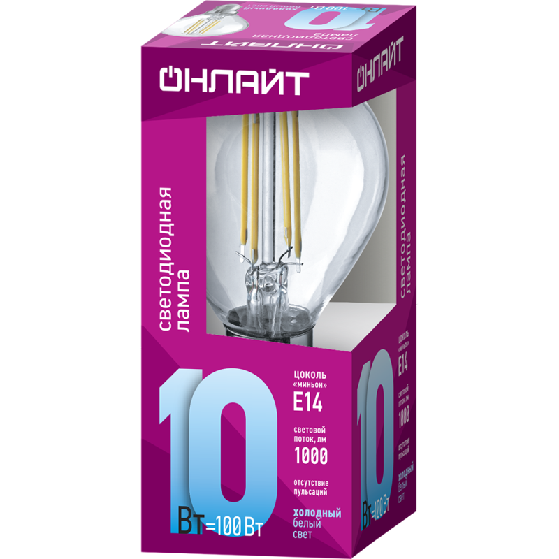 Лампа светодиодная филаментная 80 889 OLL-F-G45-10-230-4K-E14 10Вт шар прозрачная 4000К нейтр. бел. E14 1000лм 220-240В ОНЛАЙТ 80889