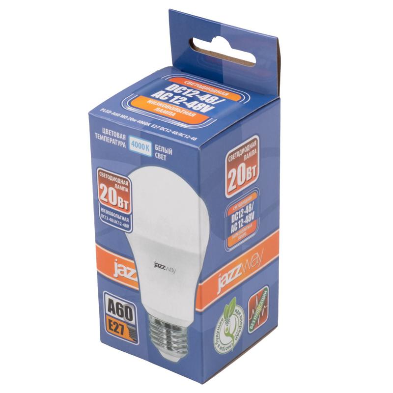 Лампа светодиодная низковольтная PLED-A60 MO 20Вт 4000К нейтр. бел. E27 12-48В AC/DC Pro JazzWay 5050624