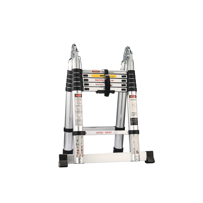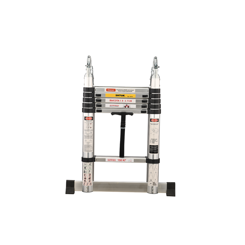 Телескопическая стремянка-лестница 1.9-3.75 м SHTOK 20103 – надёжный и функциональный инструмент, который пригодится для монтажа внешней и внутренней рекламы, систем кондиционирования и прочих монтажных работ. Можно использовать и как телескопическую лестницу, и как стремянку. Благодаря этому расширяется функциональность и сфера применения. Высота в качестве лестницы составляет 3.75 м, а в качестве стремянки – 1.9 м. Конструкция подразумевает возможность выдвижения ножек на разную высоту, а специальная рейка в основании создает дополнительный упор при работе, что придает больше устойчивости.