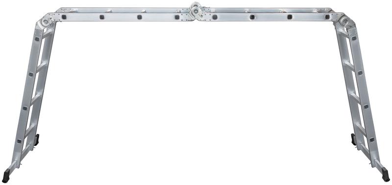 Алюминиевая лестница-трансформер FIT РОС рассчитана на нагрузку в 150 кг. Конструкция позволяет использовать изделие как стремянку, приставную лестницу или помост-платформу. Противоскользящие основания обеспечивают устойчивость лестницы во всех положениях. В сложенном состоянии лестница удобна для хранения и транспортировки.